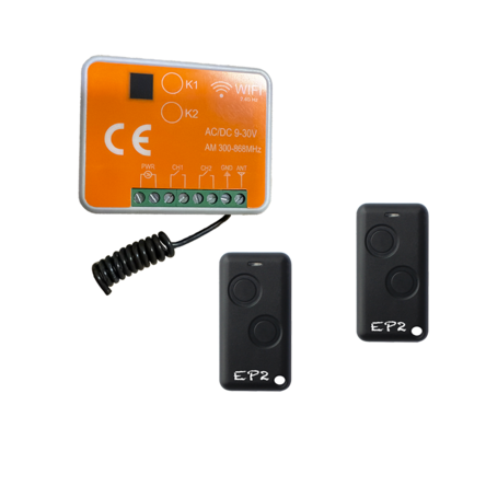 Súprava obsahuje:1x wifi + rf prijímač EP402WFR2x diaľkový ovládač EP2