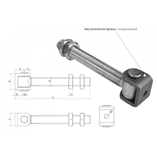 Pánt so závitouvou tyčou pre drevené a železné stĺpy.