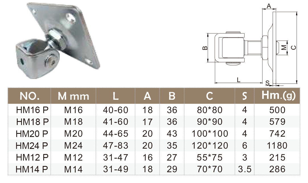 HM16 P - Pánt s platňou 80x80mm